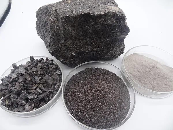 Brown fused alumina is produced by melting high-quality bauxite, iron filings, and anthracite in an electric arc furnace at high temperatures. The material is then crushed, shaped in a self-grinding machine, iron is removed by magnetic separation, and it is screened into various sizes. The main chemical component is Al2O3, with a content of 94%-96%, along with small amounts of Fe, Si, and Ti. It has a dense texture, high hardness, and is brown in color with great toughness. Brown fused alumina is suitable for manufacturing ceramic and resin high-bond abrasives, as well as for grinding, polishing, sandblasting, precision casting, and refractory materials.